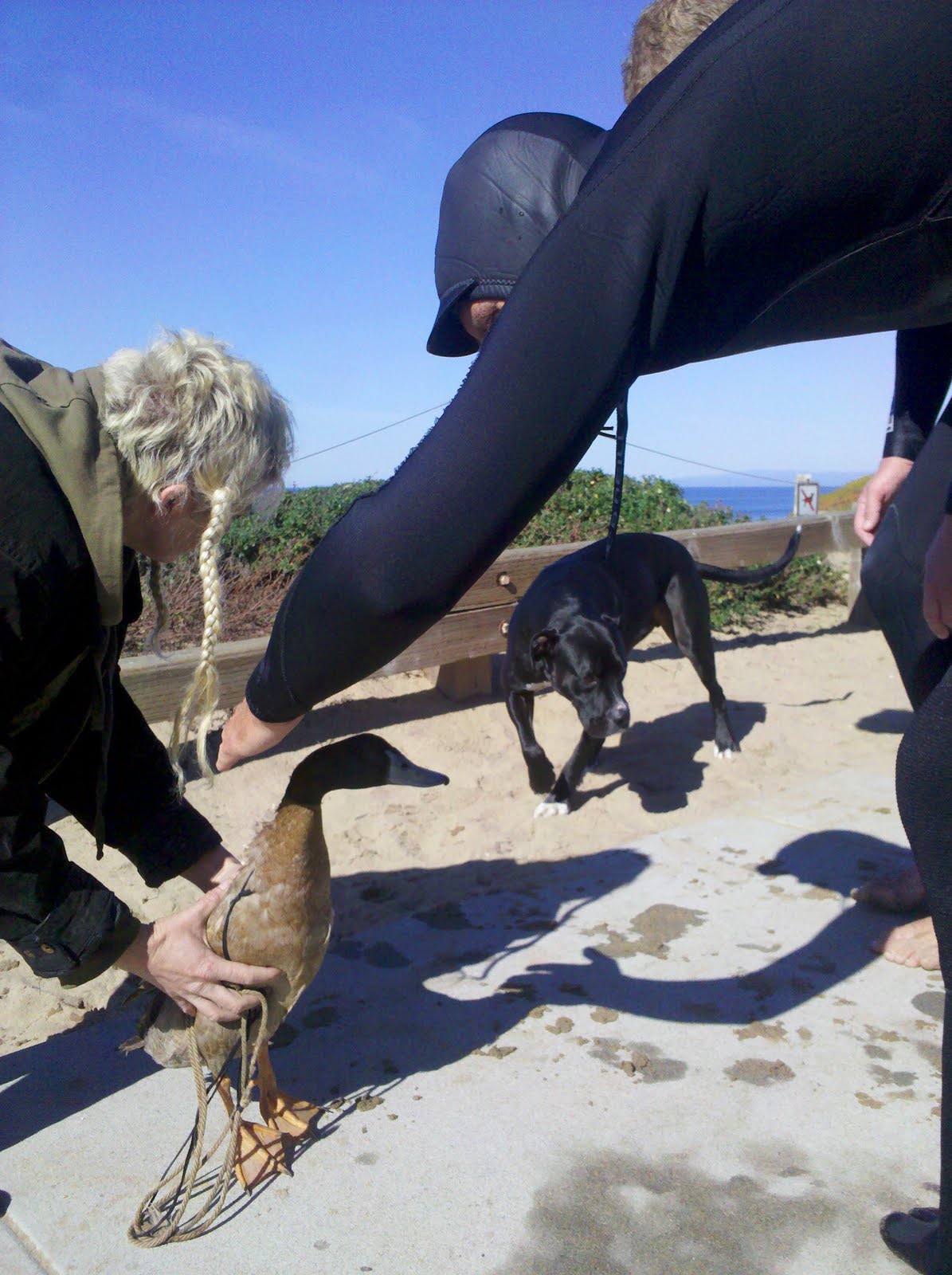 Right after I snapped this photo of Ducky perched on Katy The Wolf Dog's back, Ducky went to town.
